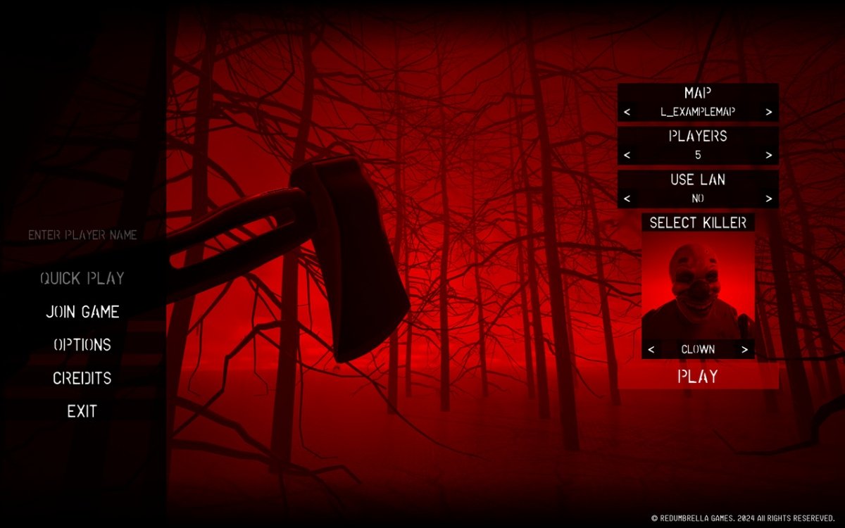 1人の「キラー」と4人の「サバイバー」が戦う、非対称型マルチプレイ対戦ゲームを実装するためのテンプレートです。キラー側には、ピエロやエイリアンなど独自の外見や能力を持つ4種類のキャラクターが用意されています。