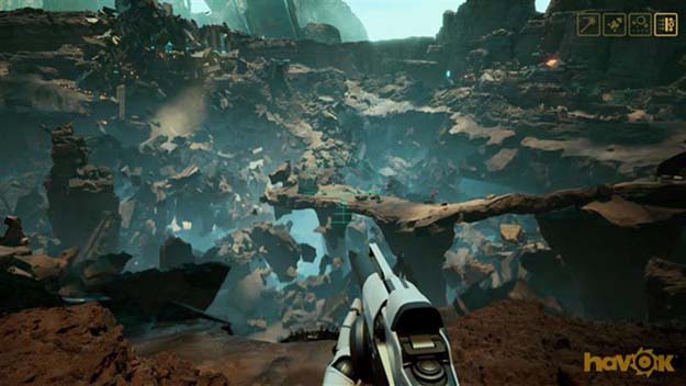 Havokの技術デモ「Canyon Demo」(公式YouTube動画)で実装された破壊表現を紹介するイメージ画像(画像はHavok公式ブログより引用)