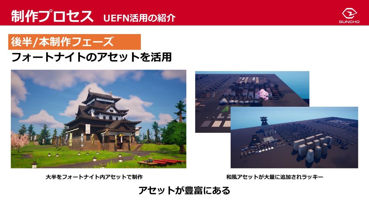 松江城天守の国宝指定10周年を記念した、UEFNで松江城をメタバース化するプロジェクトの制作事例を紹介した「UEFNでチーム開発のススメ ~メタバース松江城・プロジェクト事例紹介~」(画像はスライド資料より引用)
