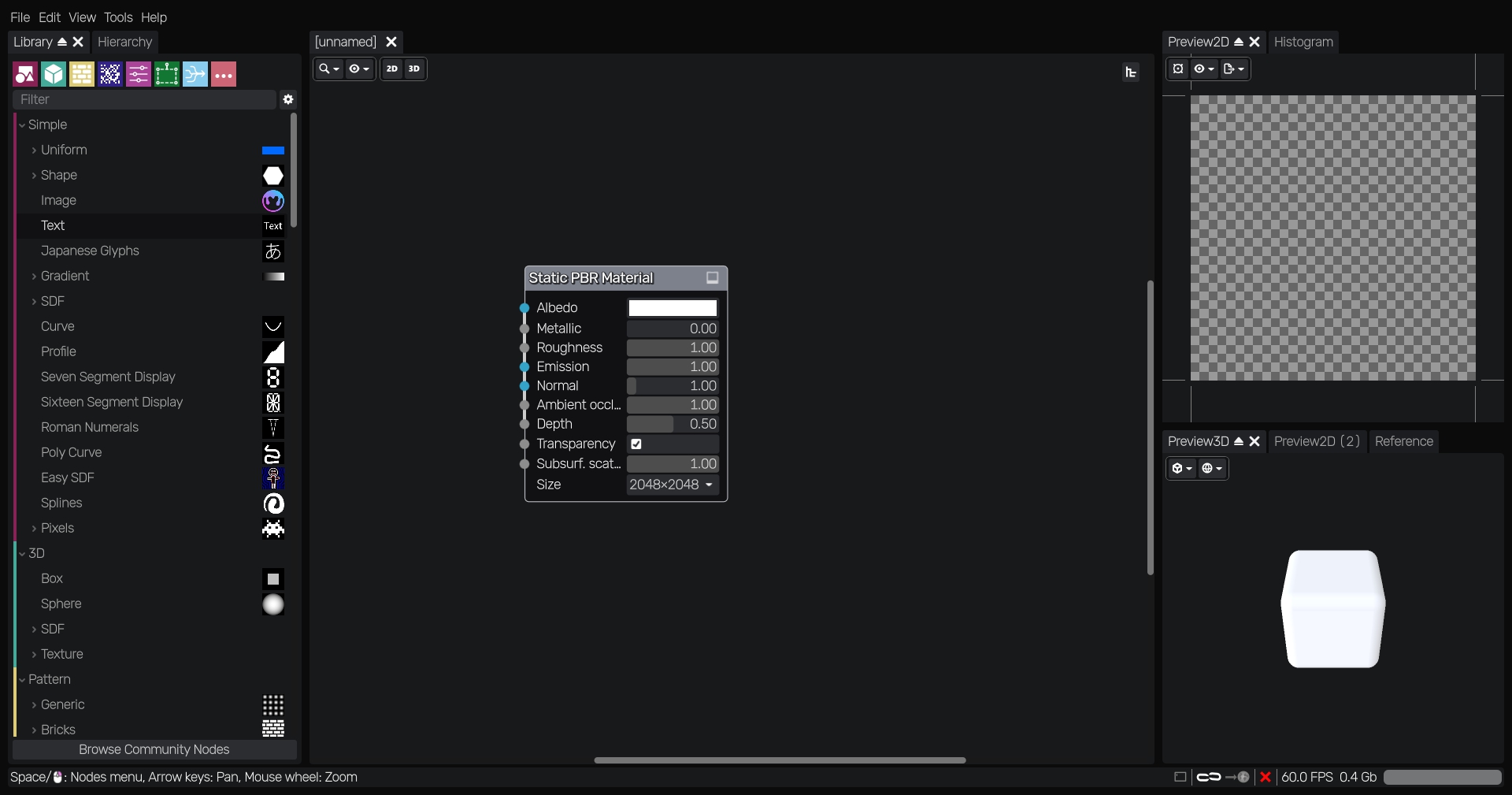 - Godot EngineをもとにしたノードベースのUIを用いて、プロシージャルなマテリアルを制作できるツール