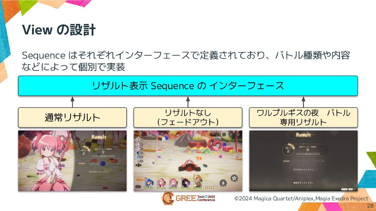 講演『「魔法少女まどか☆マギカ Magia Exedra」の多様なバトルの開発を柔軟かつ効率的に実現するためのPure C#とUnityの分離について』で使用されたスライド資料の一部(画像はスライド資料より引用)