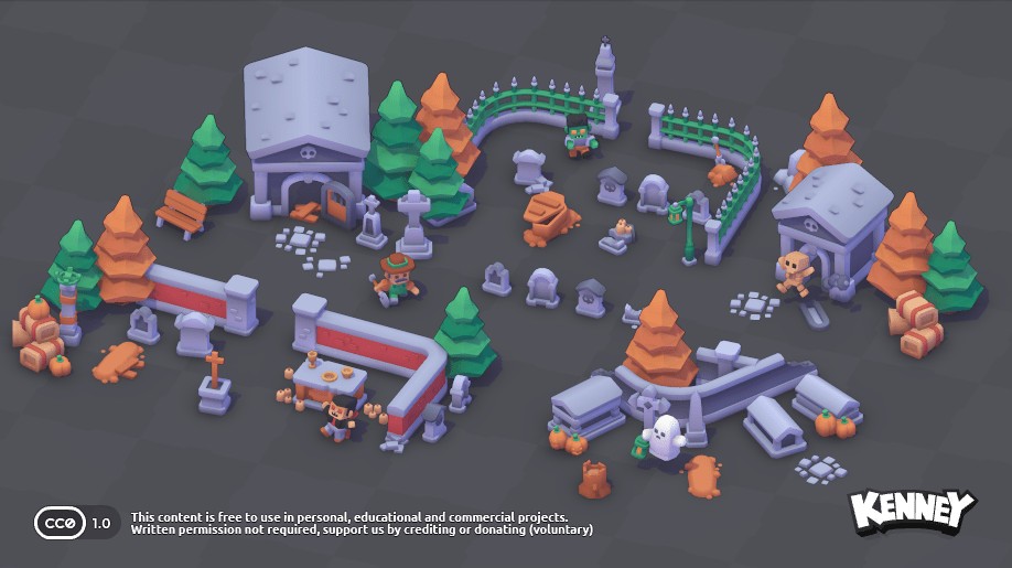 ゲーム開発向けアセットなどを販売・配布するWebサイト「Kenney」にて、2025年10月17日(現地時間)、3Dモデルパック『Graveyard Kit』のリメイク版が公開されました。