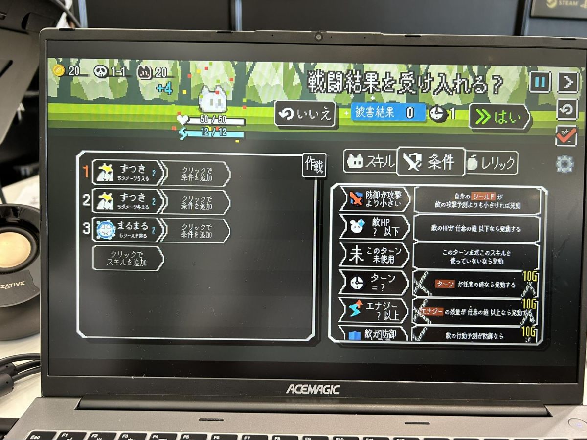 戦闘をクリアするごとに新たなスキルが手に入り、戦闘ロジックをさらに強化できる。ゲームが進むにつれてより細やかな事前準備が必要となっていく。揃えたスキルでいかに窮地を切り抜けるか、最適な戦略を編み出す過程に手ごたえがある作品だ。