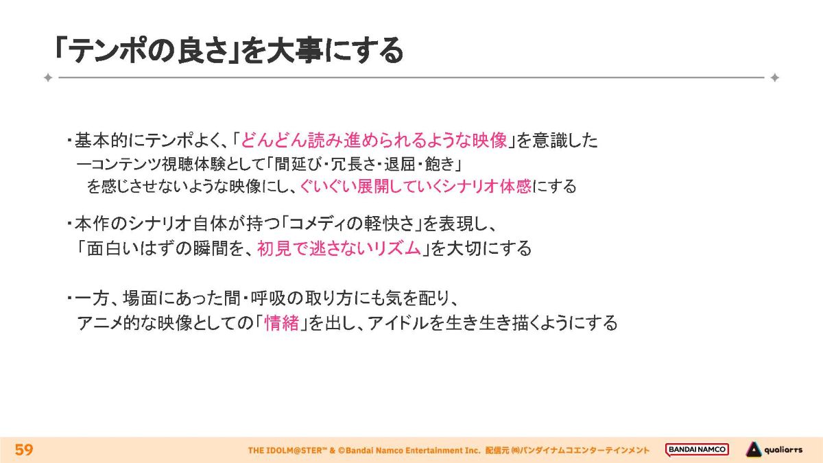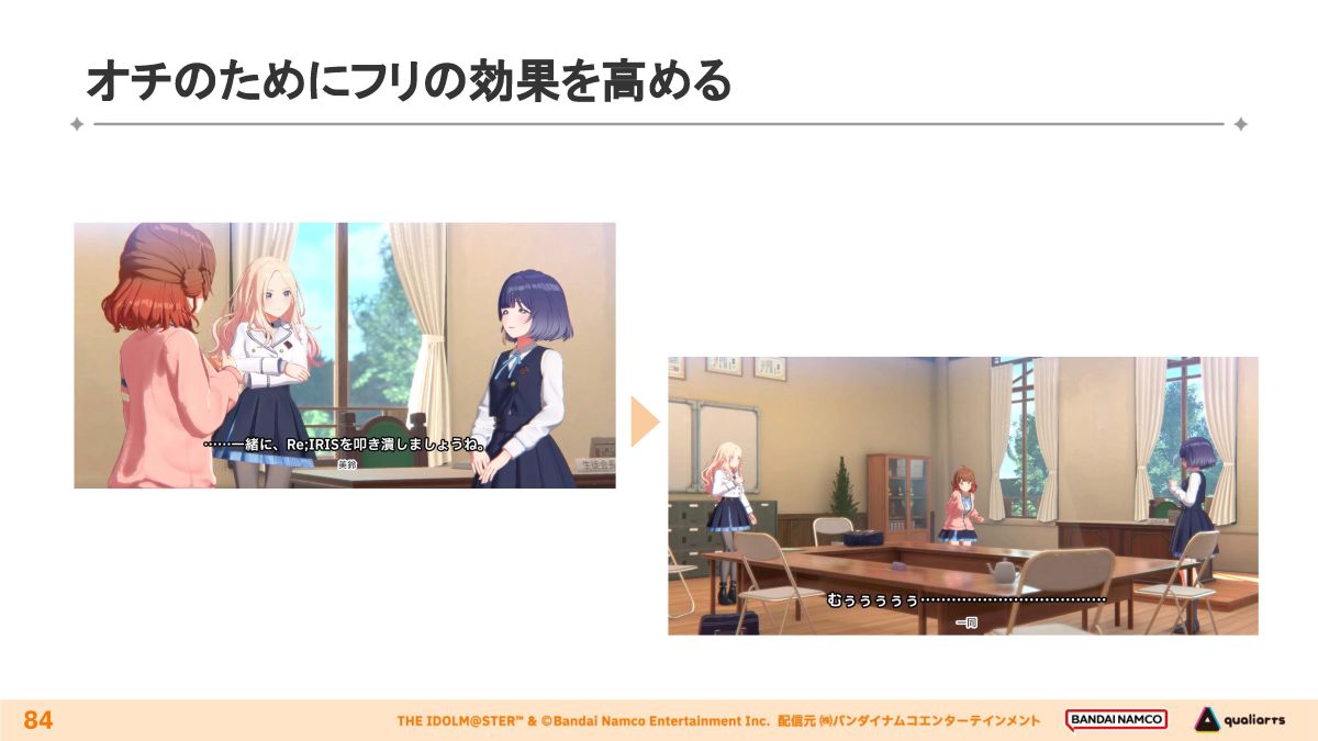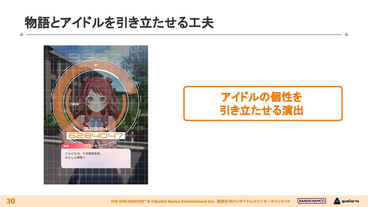 講演では、モバイルゲームという制約下でハイクオリティなコミュを仕上げるために施された、さまざまな工夫を具体的に知ることができた貴重な機会となりました。