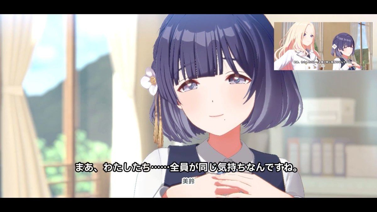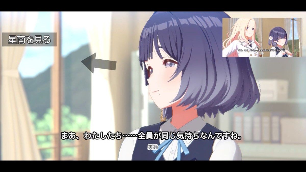 ユニットを結成したばかりの佑芽・十王星南(じゅうおうせな)・秦谷美鈴(はたやみすず)の会話シーンが例示されました。