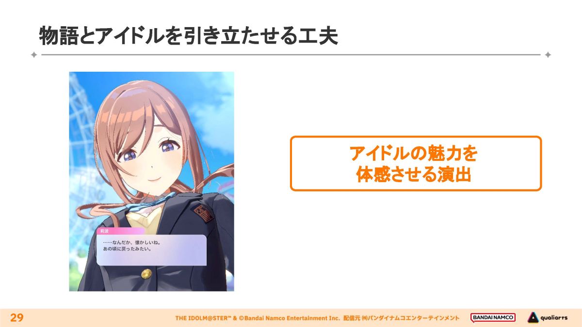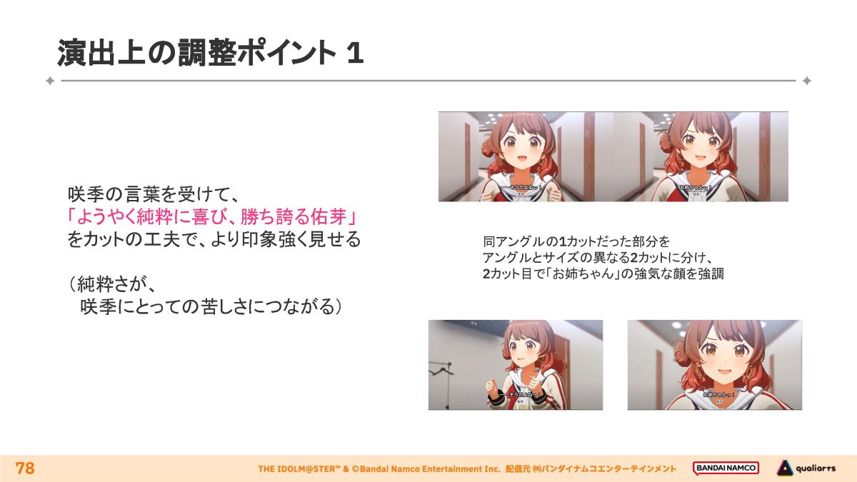 演出の具体例を紹介。アイドルの感情・性格を描き出す技法