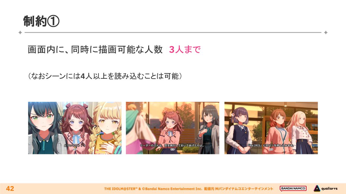 制作の都合上「初星コミュ」の映像演出には、以下に述べる4点の制約がありました。