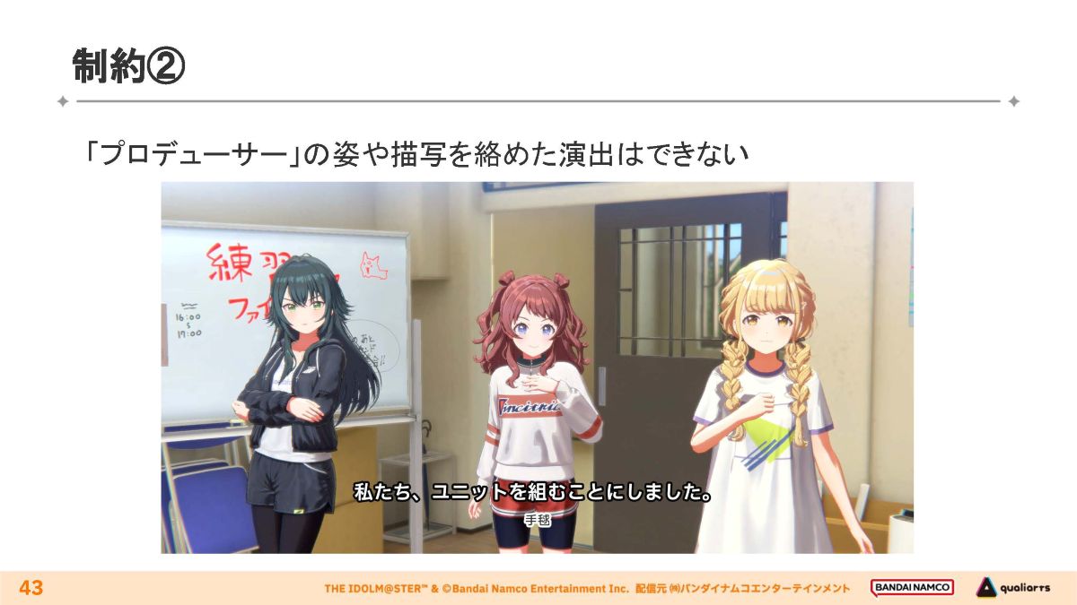 本作は一律で画面にプロデューサーの姿を映さない映像作りを行っています。