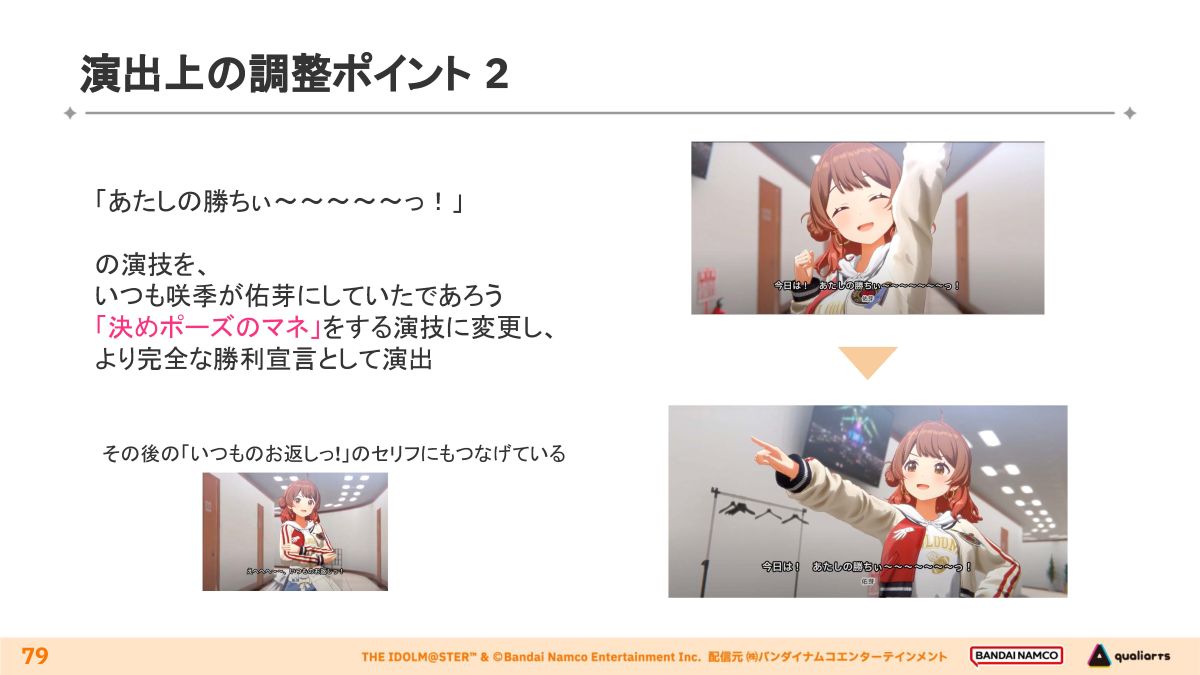 このシーンについて、演出上の調整ポイント3つが紹介されました。
