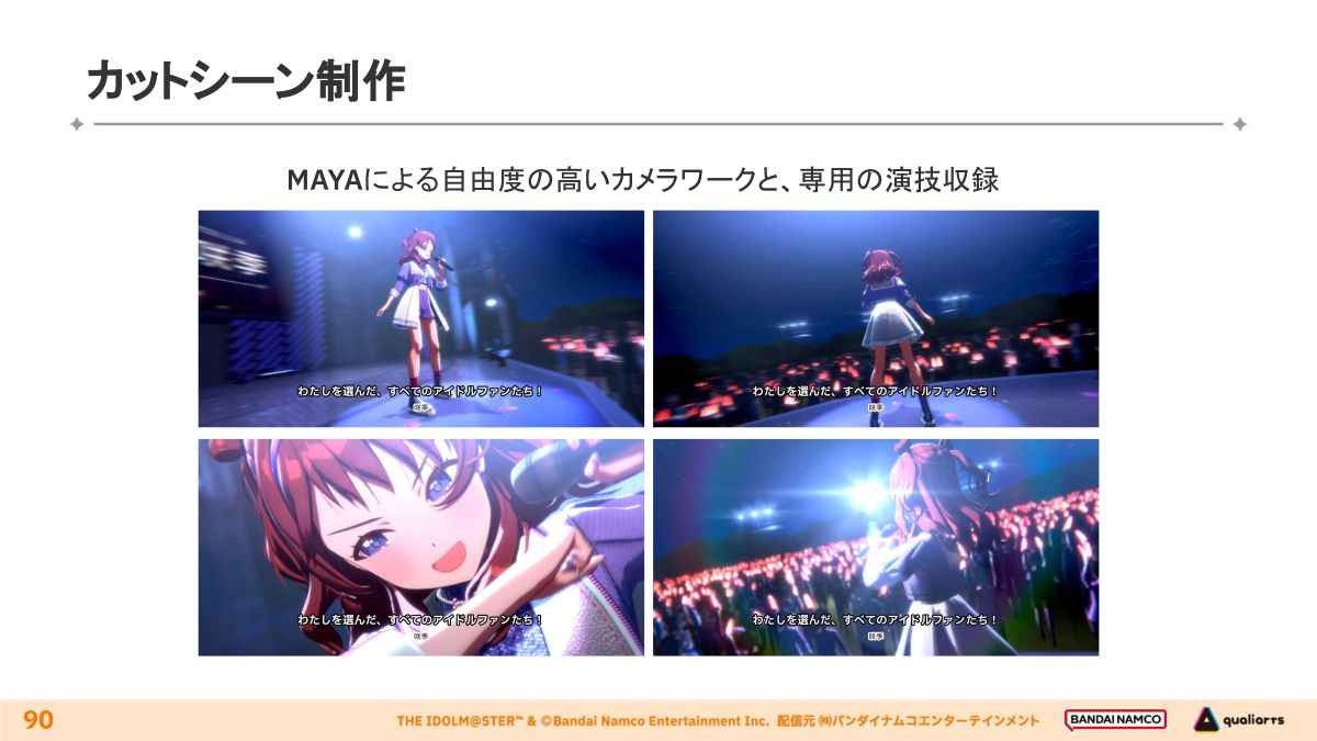 Mayaで作成されたカットシーンの例。ステージ上の咲季を一周するダイナミックなカメラワークなどは、Mayaによって可能となる演出とのこと