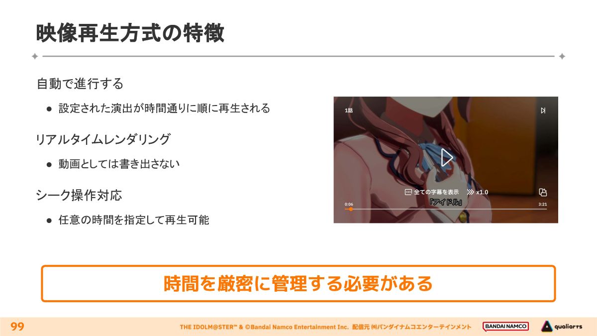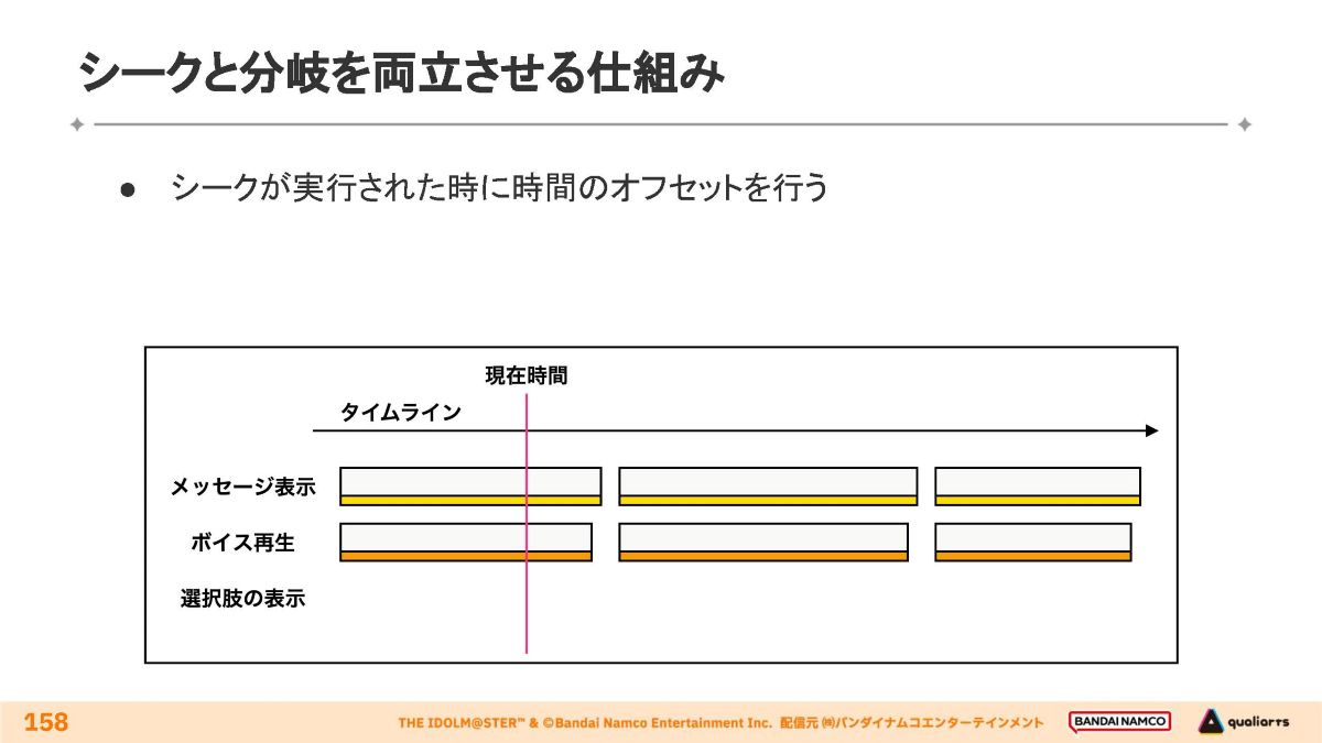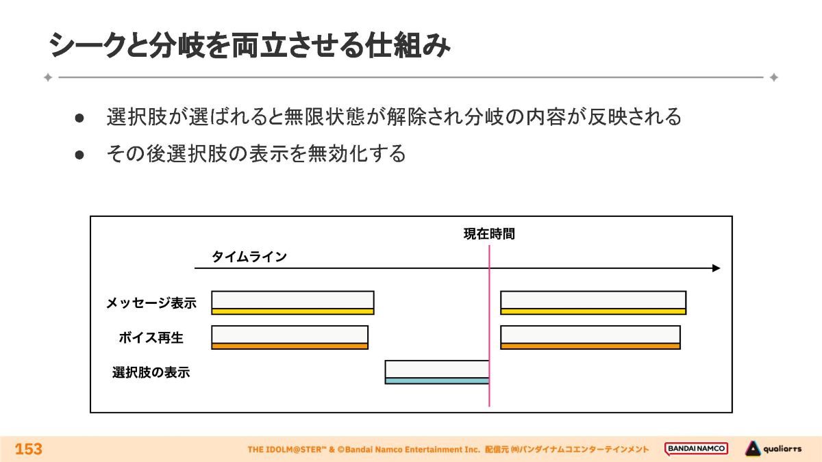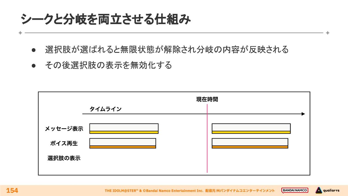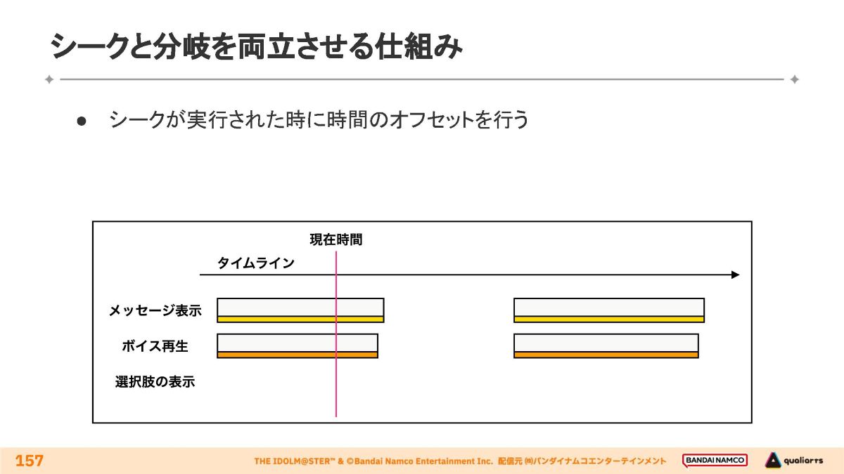 タイムライン上での分岐とシーク操作の両立手法が解説されました。