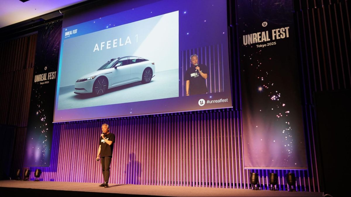 冒頭ではUE5の自動車業界における採用事例について言及。HMI開発や車両デザイン、ビジュアライゼーション、自動運転の開発支援などでUE5が活用されていることに触れ、ソニー・ホンダ の電気自動車「AFEELA 1」の開発事例も紹介されました。