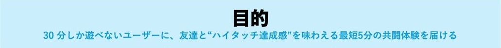 ・「5分でハイタッチ達成感を得る共闘体験」という目的を設定