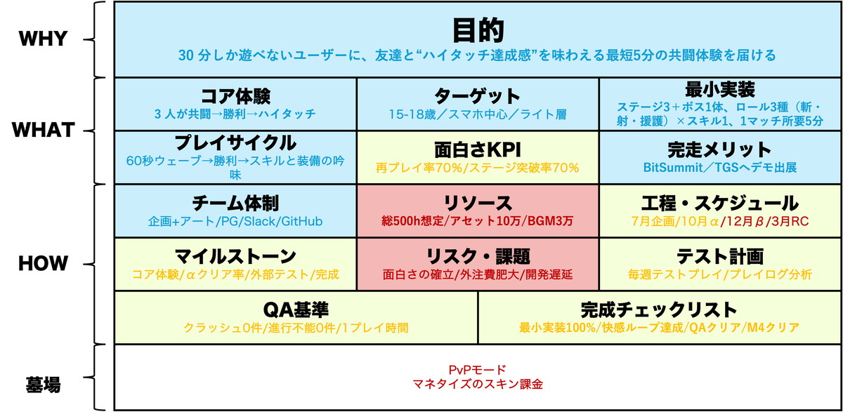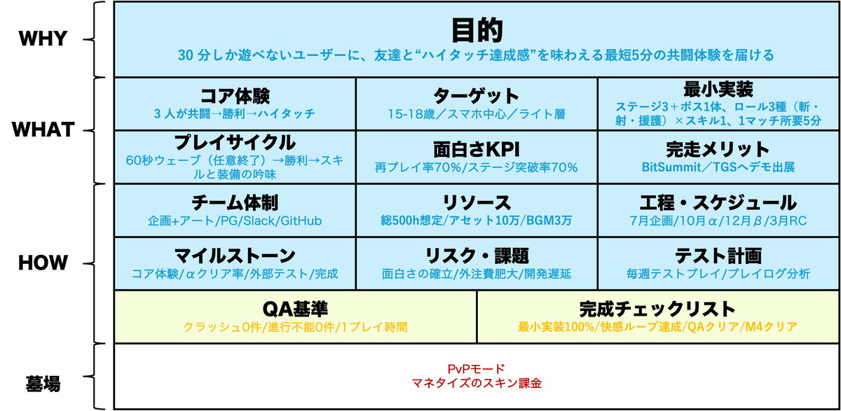 ▼第2回「完走率10%を突破する!“穴埋め式ゲーム企画書”実践ガイド「A4×1枚・15ブロック“完走テンプレート”公開」の記事はこちら