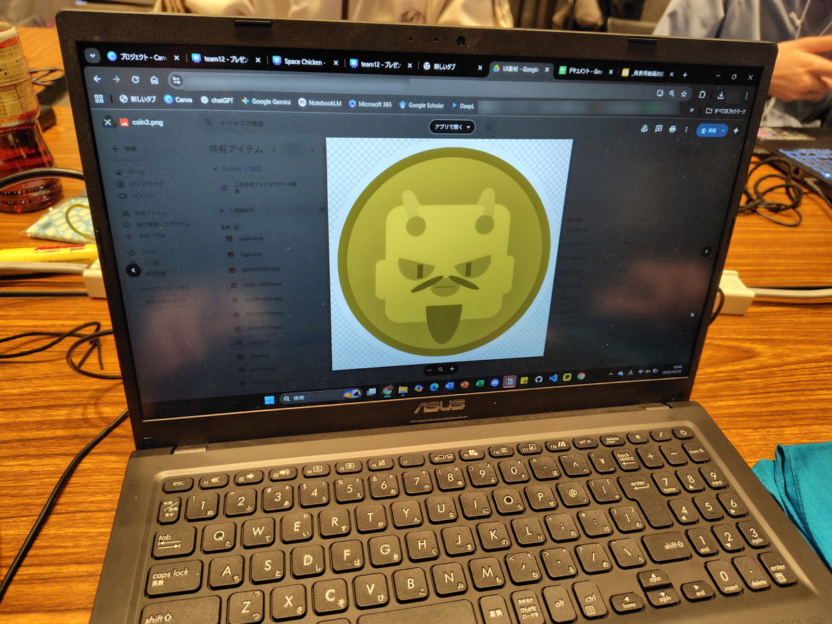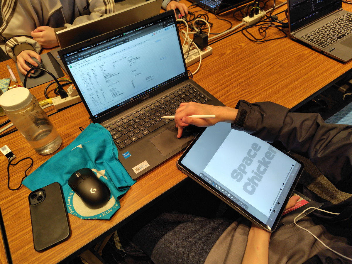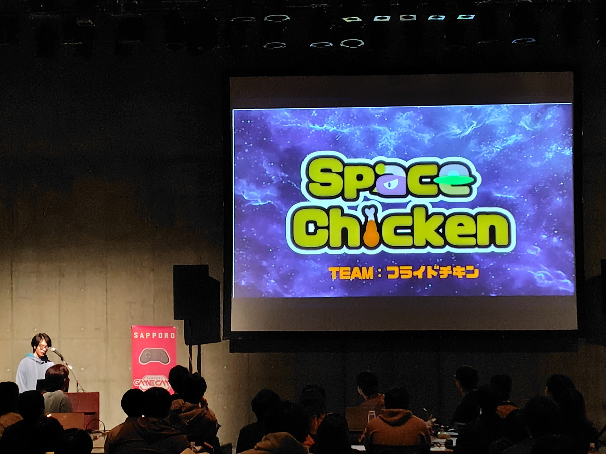 12時を回ったころ、宇宙鳥はいつの間にか『スペースチキン』、愛称は「スペチキ君」と名付けられていました。あわせて、チーム名は「フライドチキン」、ゲームタイトルは『スペースチキン』に決定!