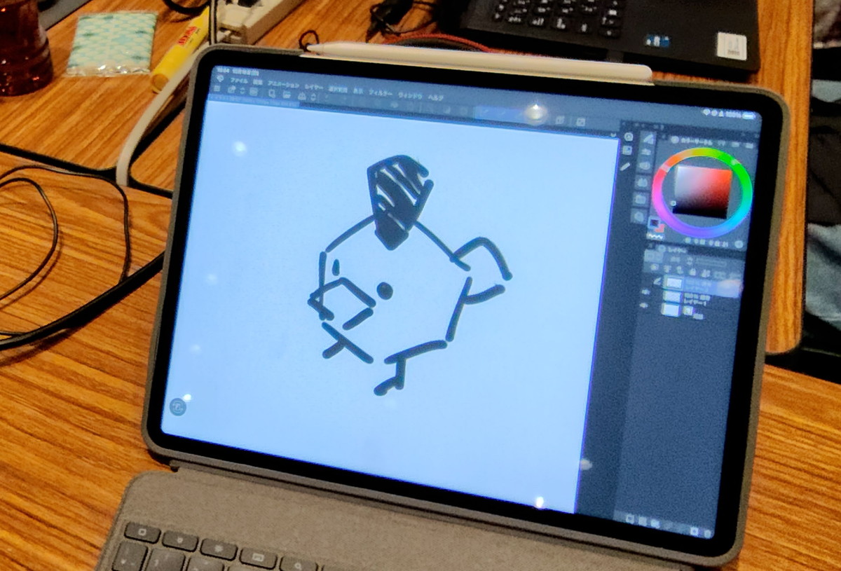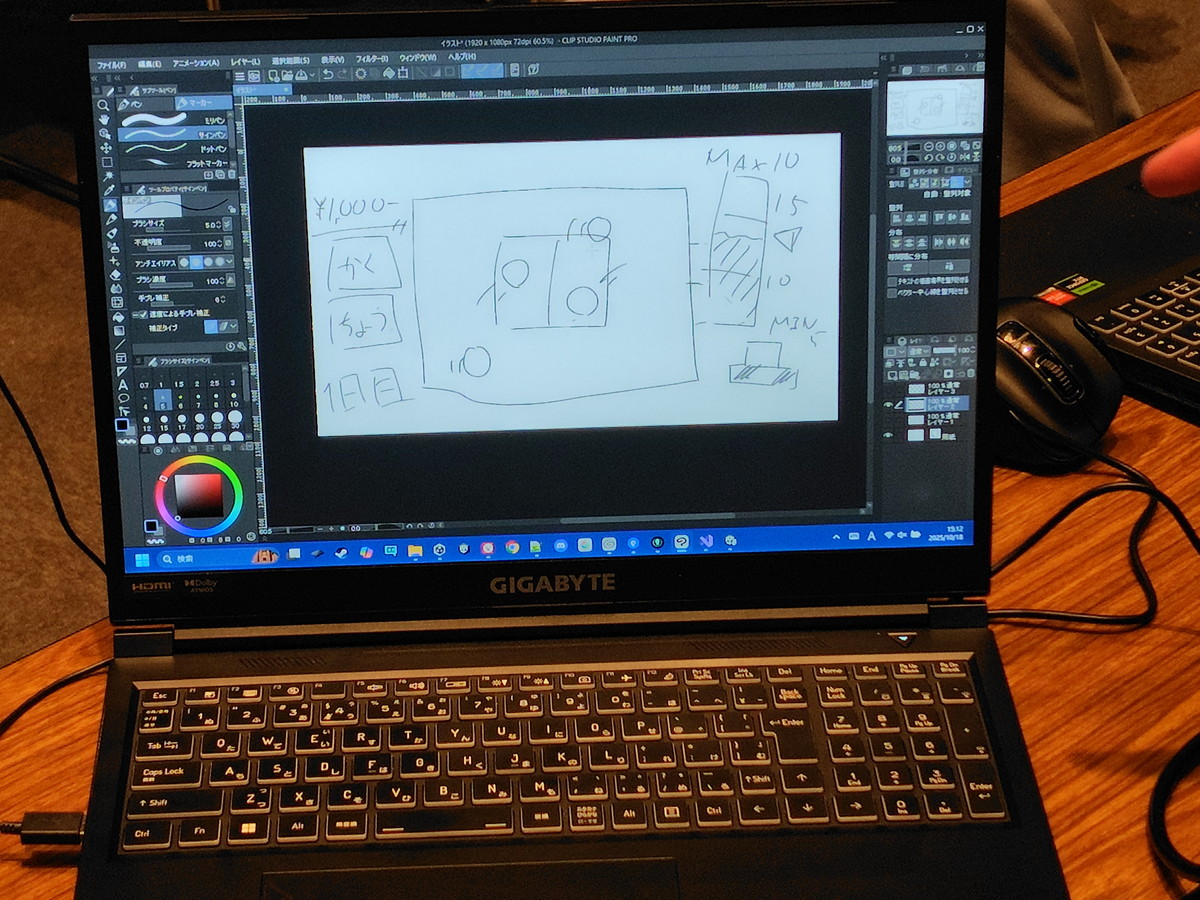 Canvaはテキストも作成できるため、UIのデザインと並走しながら発表資料の雛形も作成していたようです。その後は作り上げた仮素材を参考に、CLIP STUDIO PAINTでデザインをオリジナルのものに仕上げています。