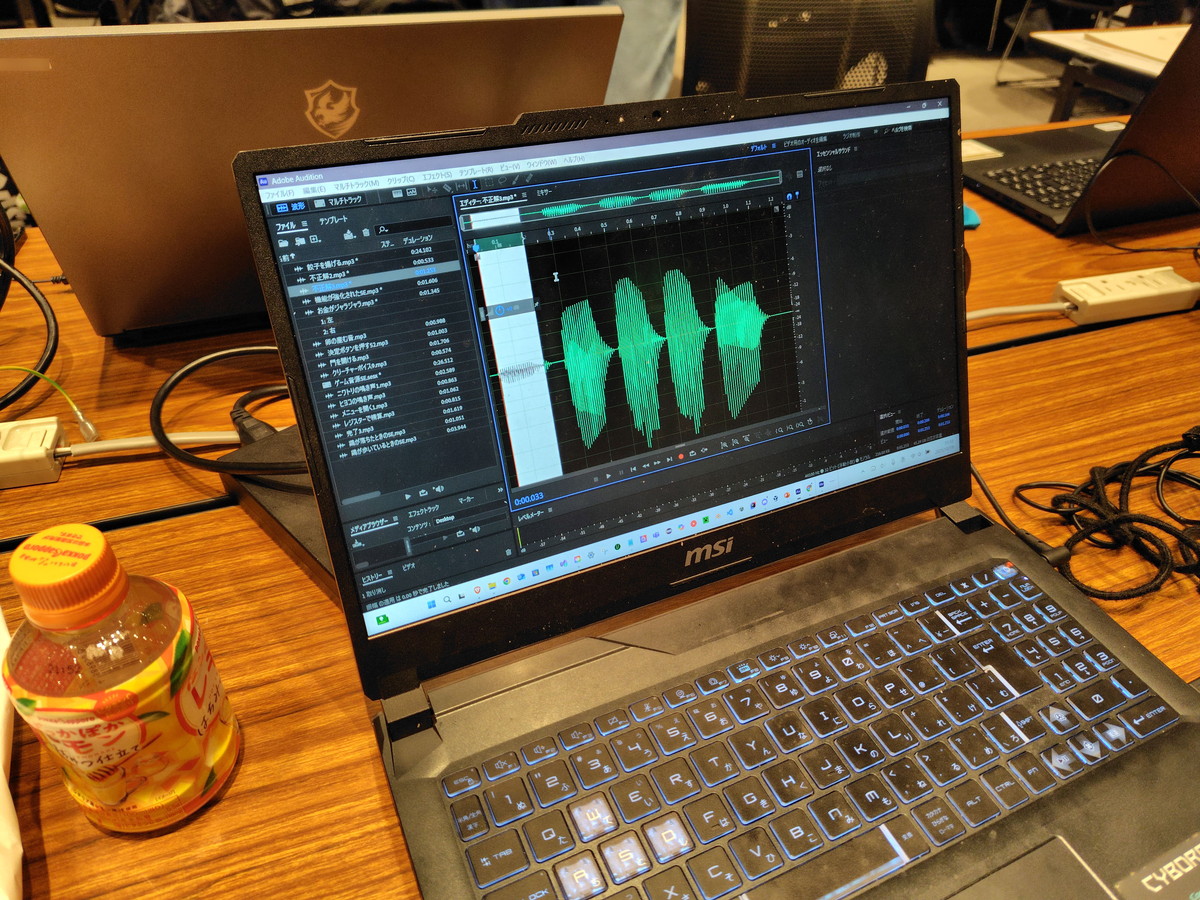 プランナーは、2Dデザイナーが選定してくれた音素材を調整。不要な無音を削除しつつ、音量差をAdobe Auditionで調整していました。