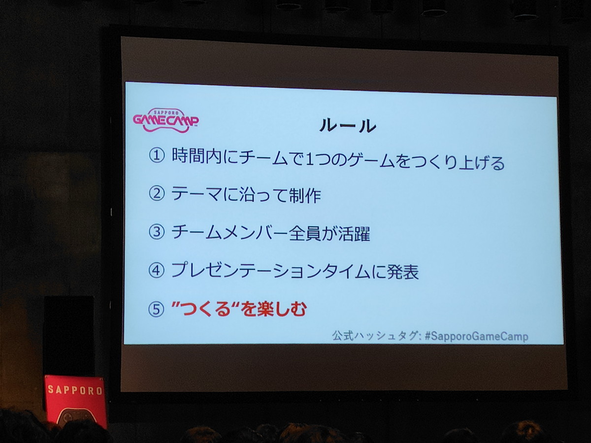 細かなルールは主催者によって変わり、「Sapporo Game Camp 2025」でのゲームジャムは、以下のように設定されていました。