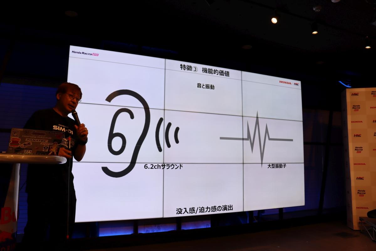 以上の4点を「Honda eMS SIM-01」の魅力として挙げ、「HondaおよびHRCの伝統に、eMSというデジタルな進化の観点を掛け合わせることで、Honda Racingのスピリットを未来にアーカイブする」という思いを込めて開発したと岡氏は語りました。