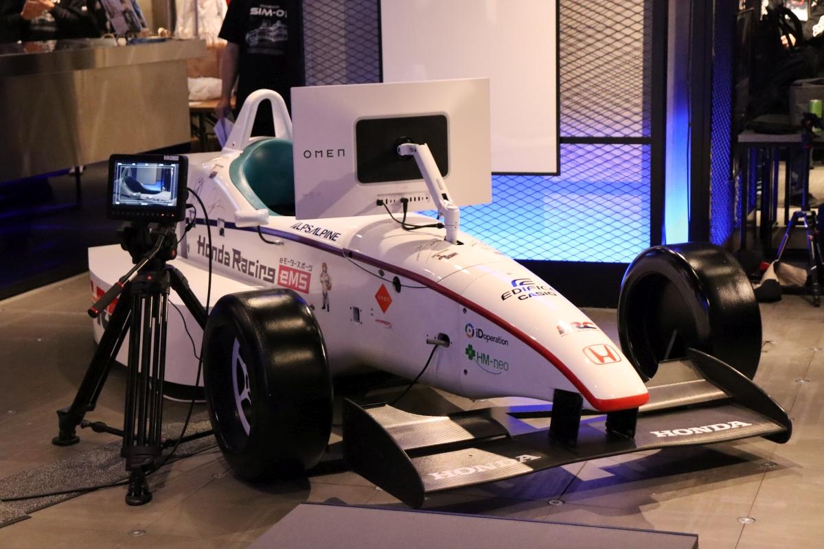 試乗体験用の「Honda eMS SIM-01」。ボディには数々のステッカーやレーシングドライバーのサインがある