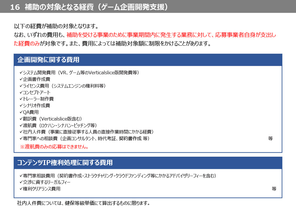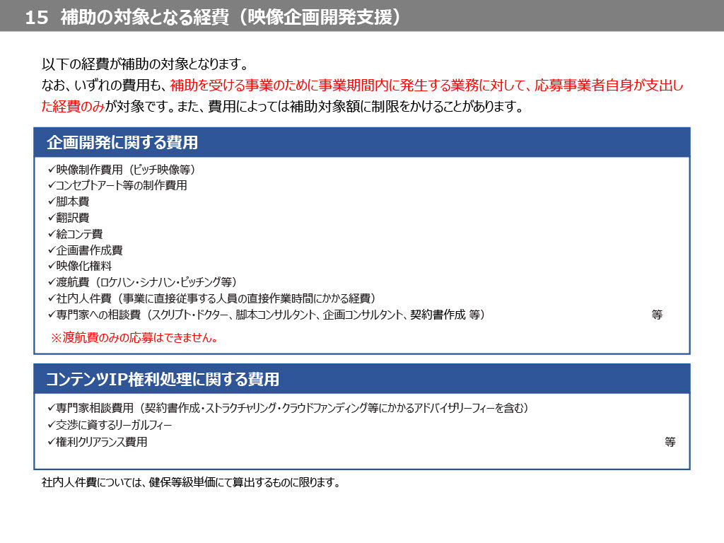 映像企画・ゲーム企画の補助対象(画像は「国内映像企画開発を行う事業(プリプロダクション支援)」公募要項のスクリーンショット)