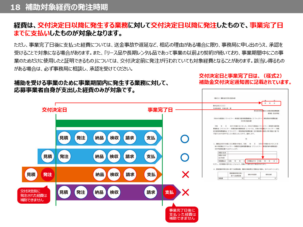 交付決定日以降に発生した業務かつ交付決定日以降に発注したもので、事業完了日までに支払ったもののみが補助の対象となる(画像は「国内映像制作を行う事業(プロダクション・ポストプロダクション支援)」公募要項のスクリーンショット)