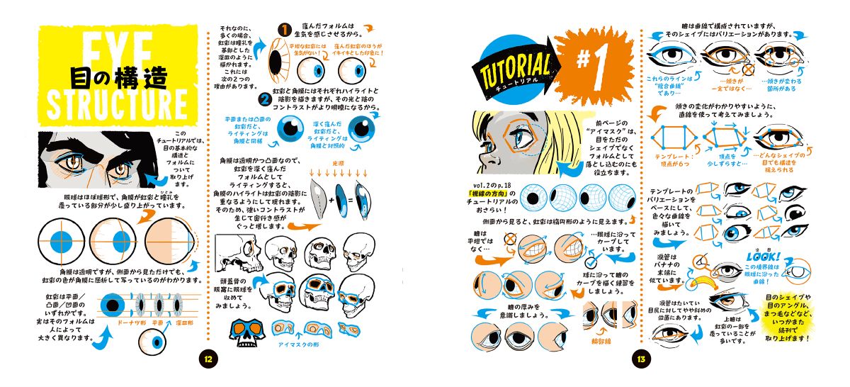 複雑なイラストでも構図を単純化して捉え、描き方の基本を習得できるというコンセプト。人物や動物、モンスター、機械や自然風景など多岐にわたるモチーフを掲載し、パーツの細部にわたり描くコツを説明しています。