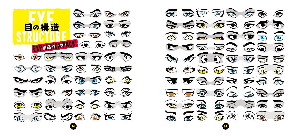 一部のモチーフに対しては「拡張パック」と称して、描き分けのバリエーションを多数収録したページが用意。