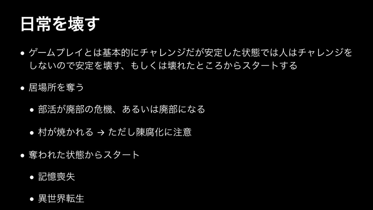 小規模ゲーム開発に対するメンタリングの仕事を長年やっていて受ける相談の中で多いものの一つ「ゲームシナリオをどうするか」です。シナリオを発注する場合でも自分のゲームにどのような物語を加えるか、そもそもどんな背景世界でどんなキャラクターが活躍するのかビジョンを持っている必要があります。本講演ではそれらを考えるきっかけとしてどのように背景設定や物語を作っていくのか、ロジカルに考える方法をお話します。