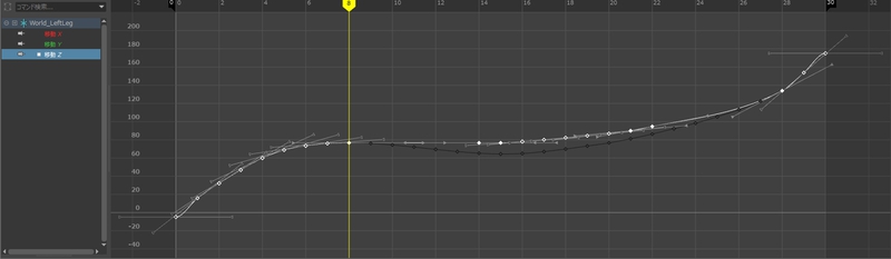 前準備として、足のアニメーションカーブをワールド座標での制御に変換。