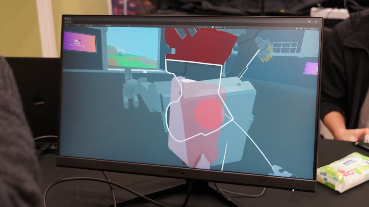 開発の工夫について聞くと、とくにUIの実装に苦心したとのこと。VRゲームはプレイヤーの視線移動をコントロールしにくく、画面上で情報を伝えることが困難だといいます。