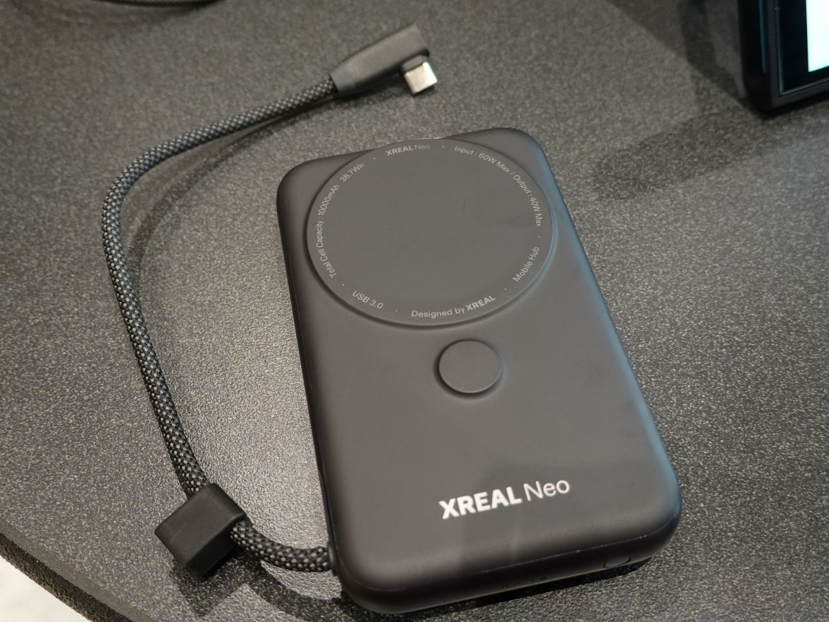 同時に発表された「XREAL Neo」は、デバイスを充電しながらARグラス接続を可能にする、映像出力機能付きモバイルバッテリーだ。10,000mAh/38.7Whの大容量バッテリーを搭載し、外出先でも安心してAR体験を楽しめる。