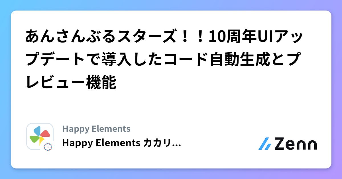 Happy Elements カカリアスタジオは2025年11月20日(木)、「あんさんぶるスターズ!!10周年UIアップデートで導入したコード自動生成とプレビュー機能」と題した記事をZennにて公開しました。