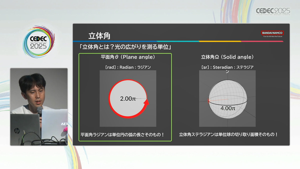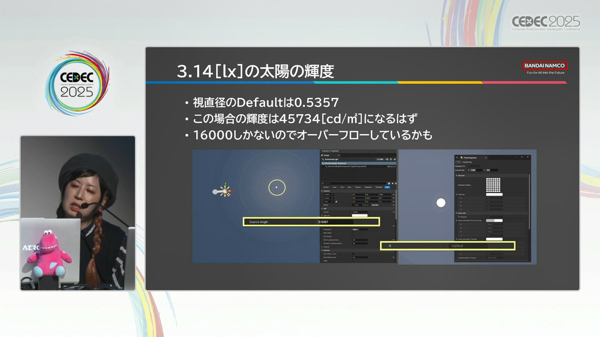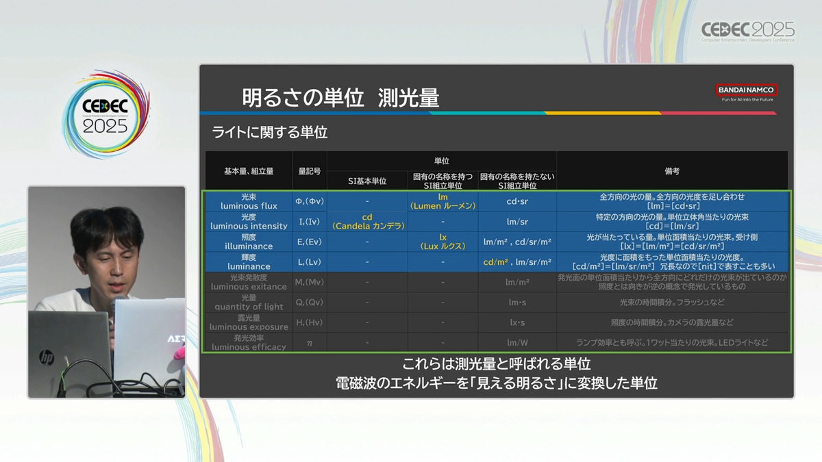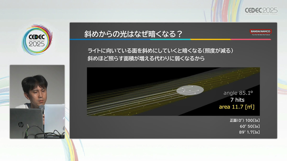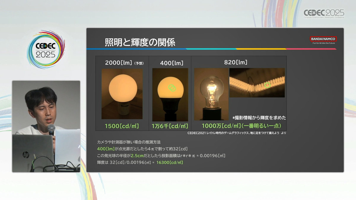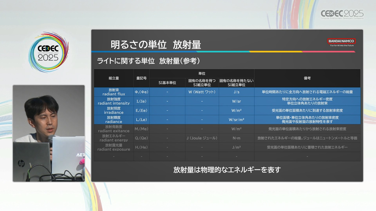 ※ ライトが出力するエネルギーの総量を示すパラメータ。講演ではこの数値を、現実世界の物理学における「照度」として扱っている