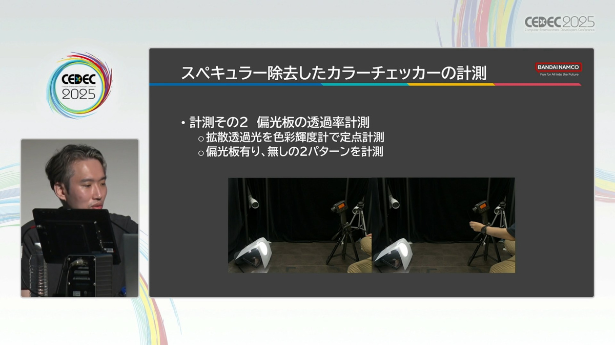 人間の目はモニターの状態や環境の影響も受けるため、目視だけでなく数値でも確認することが大切だと説かれました。