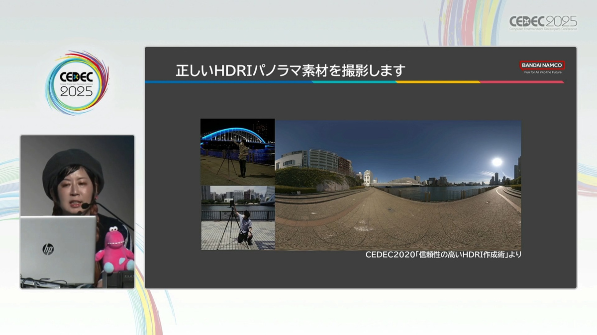バンダイナムコスタジオでは「TrueHDRI Library」のパノラマ素材を撮影してLookDev環境を用意しているとのこと。撮影方法などについては、CEDEC2020で同社が実施した講演「信頼性の高いHDRI作成術」で解説されています(講演資料はCEDiLで閲覧可能)。