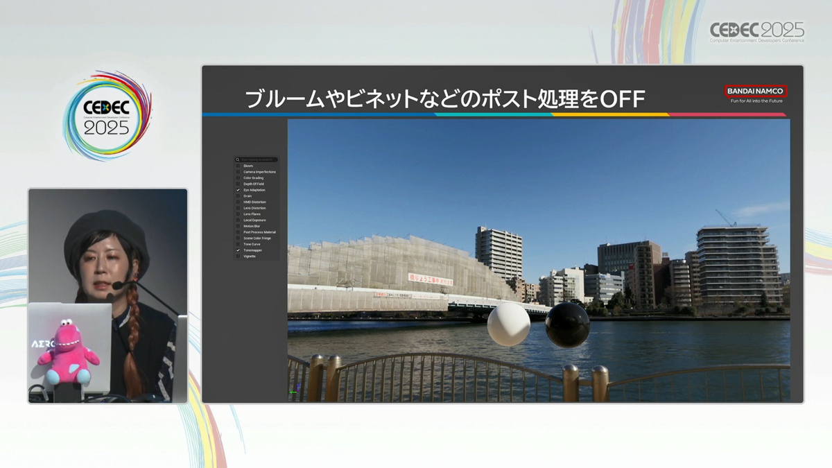 作業環境を確認する上でまず行うのは、Unreal Engine 5.6(以下、Unreal EngineはUEと表記)のポストプロセスの無効化とそれにともなう調整です。UE5.6はデフォルトでブルームやビネットなどが施される仕組みですが、ライティングの観点ではそれらが問題になるそうです。