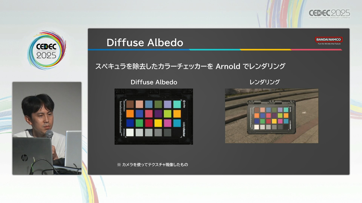 スぺキュラーを除去したカラーチェッカーの画像データを用意できれば、3DCGモデルのDiffuse Albedoを正確に調整できます。