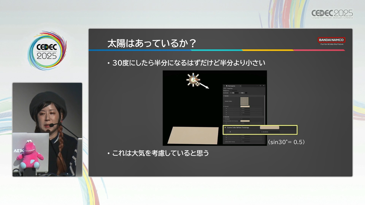 DirectionalLightで太陽をシミュレートする際の仕様についても解説されました。