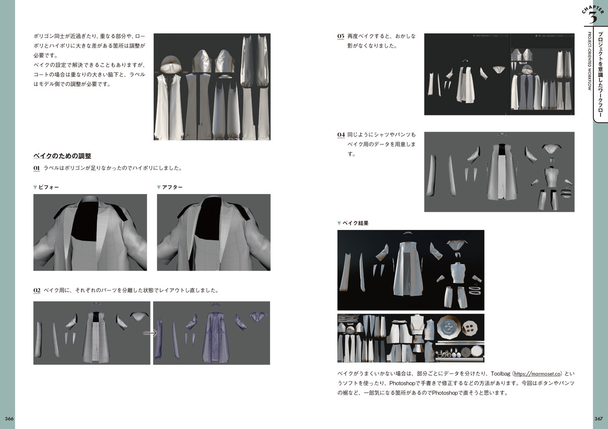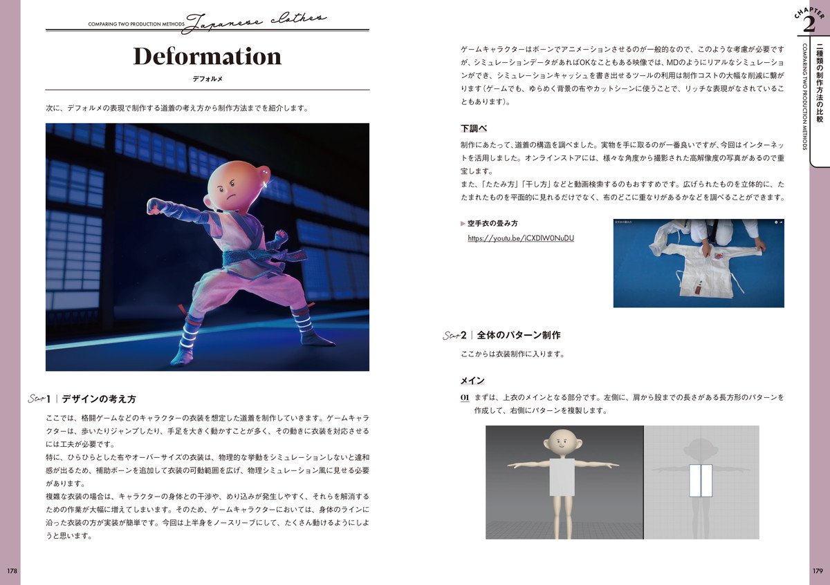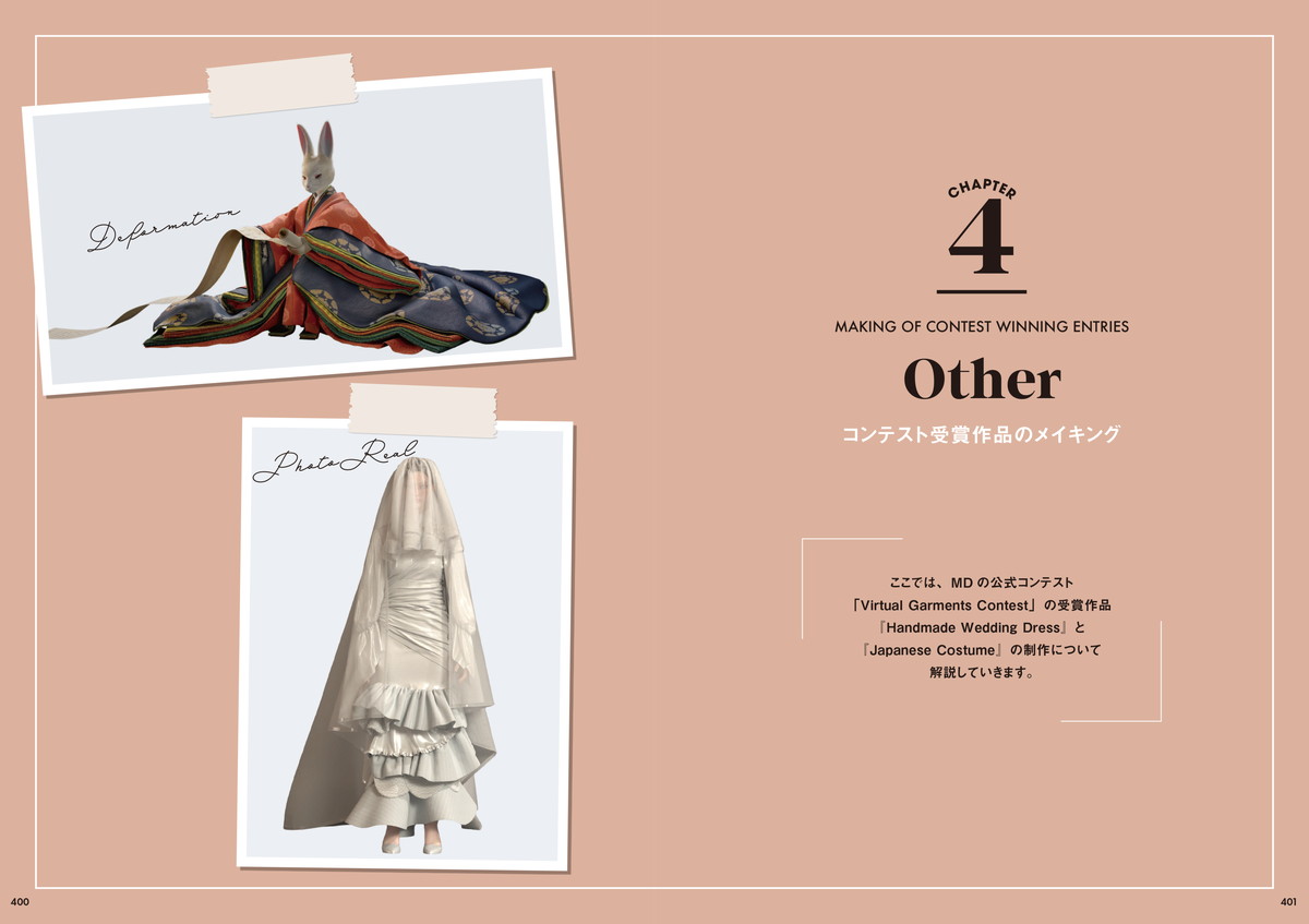 そのほか、「Marvelous Designer」公式の服飾作成コンテスト「VIRTUAL GARMENTS CONTEST」における受賞作品2点の制作工程が紹介されています。