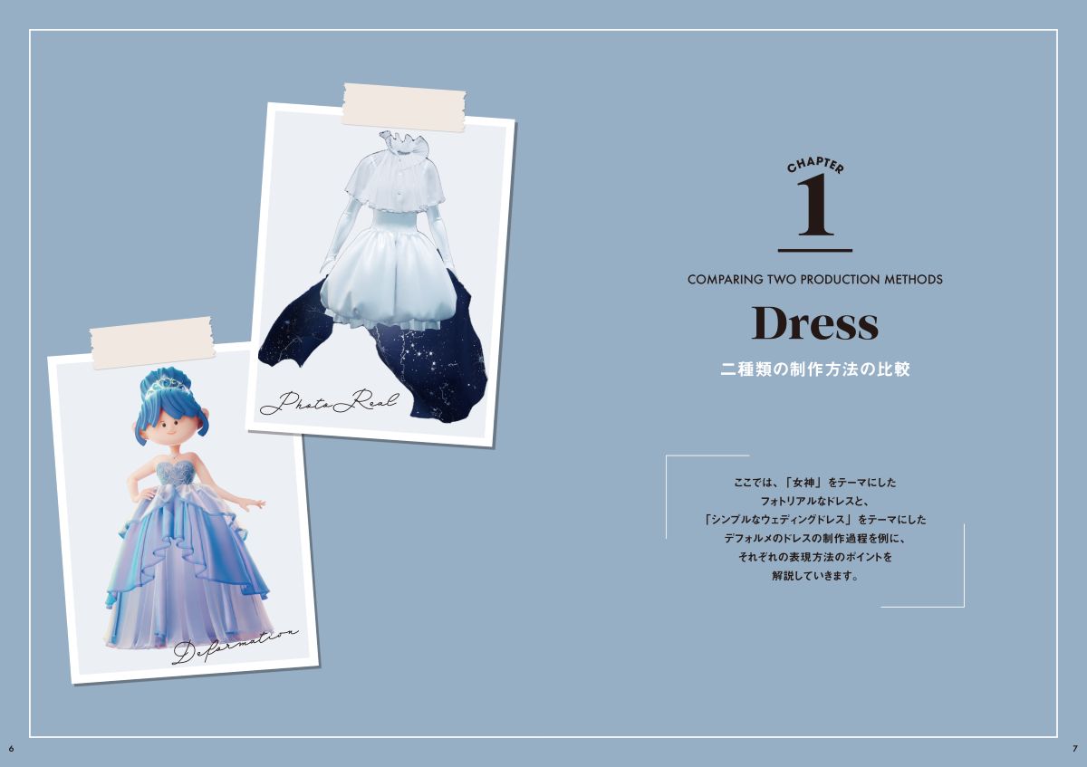 - ドレス:二種類の制作手法の比較(フォトリアル/デフォルメ)