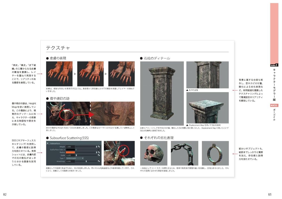 豊富な作品画像を掲載しているとともに、作品の魅力や制作上の工夫などについて、著者の佐藤智幸氏がコメントを添えています。同氏はVFXディレクター/デザイナーとして活動しているほか、C&Rクリエイティブアカデミーの講師なども務めています。