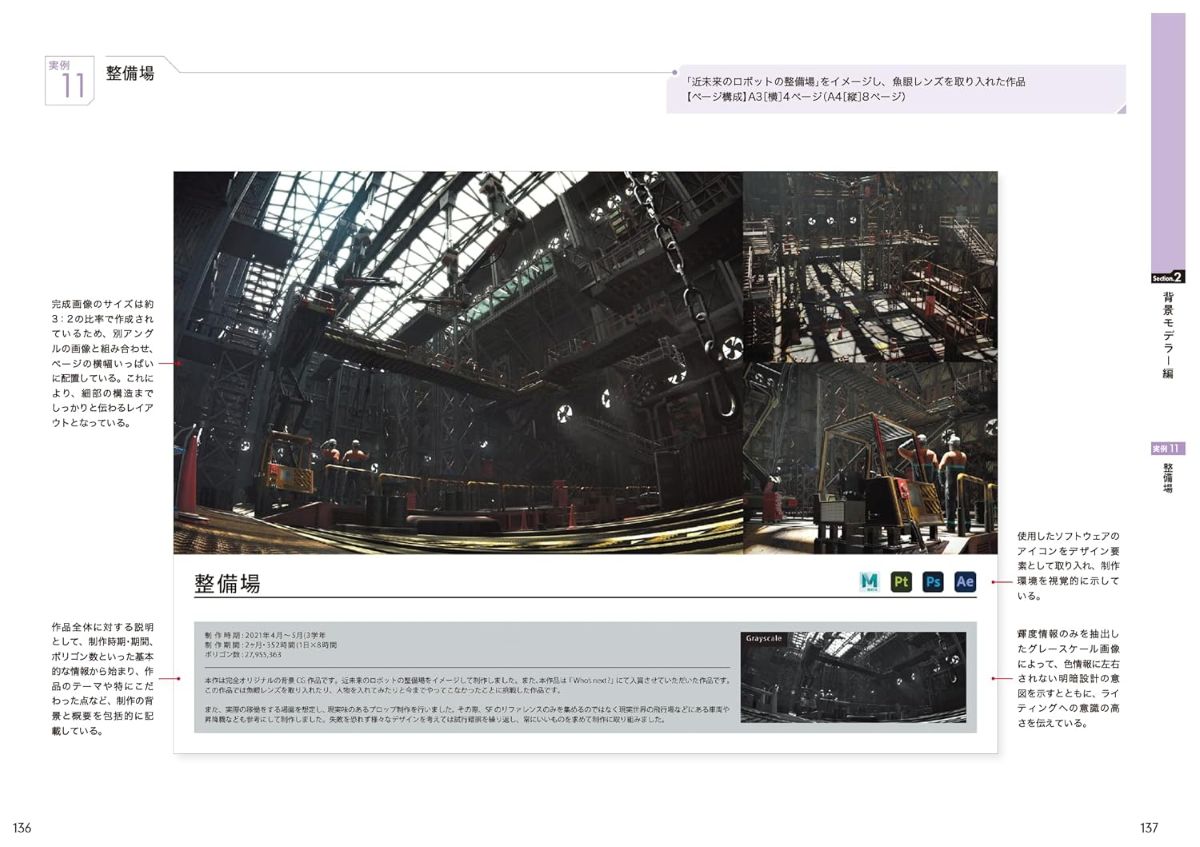 本書は、3DCGクリエイターとしての就職を志す学生などに向けて、大手ゲーム会社からの内定獲得に寄与したというポートフォリオ21点を300ページ以上にわたり紹介している書籍。
