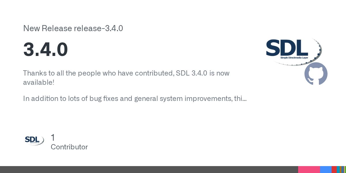 2026年1月1日(木)、オープンソースライブラリ「Simple DirectMedia Layer(SDL)」の最新バージョン「3.4.0」がリリースされました。