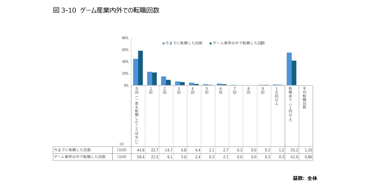 また転職経験者は過半数の55.2%に上りました。レポートではこれらの結果について「人材流動性の高さを確認できた」と述べています。