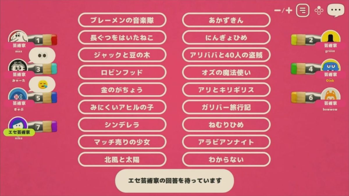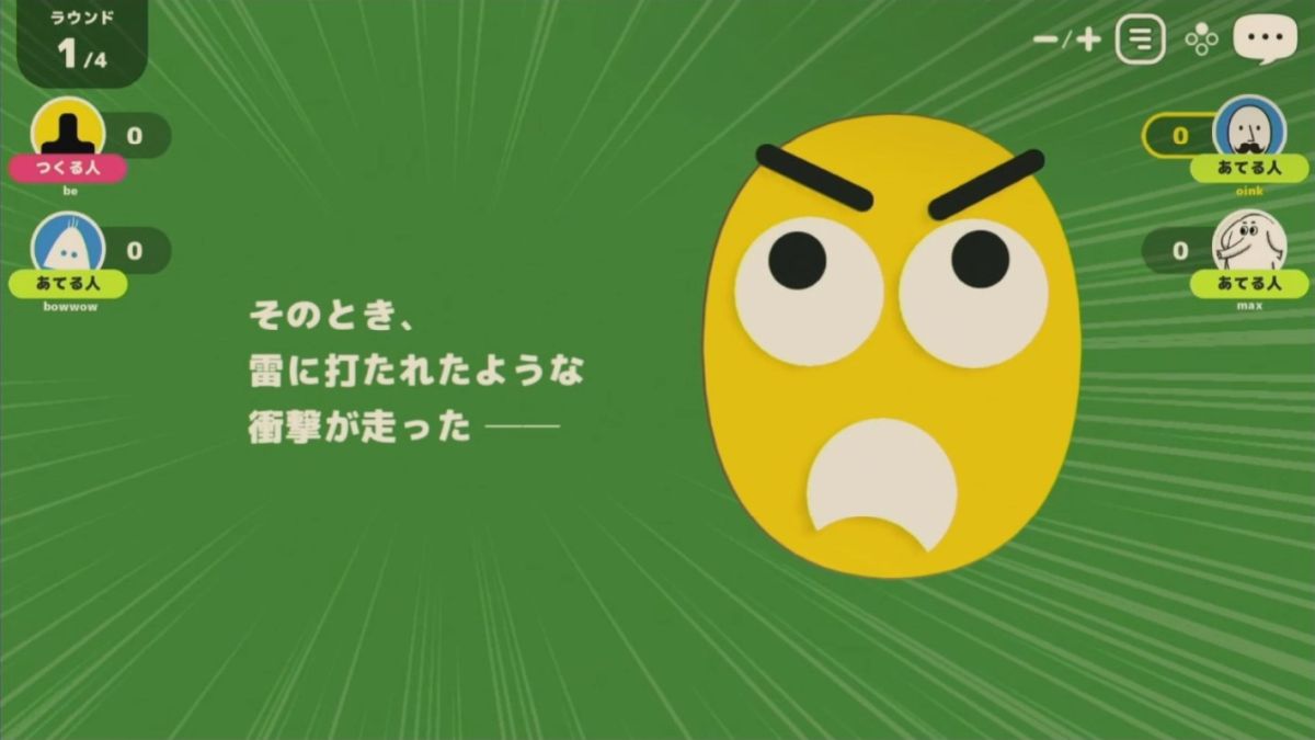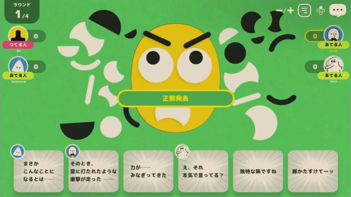 そこで、勝敗には関係なく、エセ芸術家だったプレイヤーにお題の予想回答フェーズを加えることで、フィードバックのタイミングを設けました。また、『この顔 どの顔?』の場合では、正解発表後に、お題のセリフの横にプレイヤーが作った顔が表示されることでフィードバックとしています。