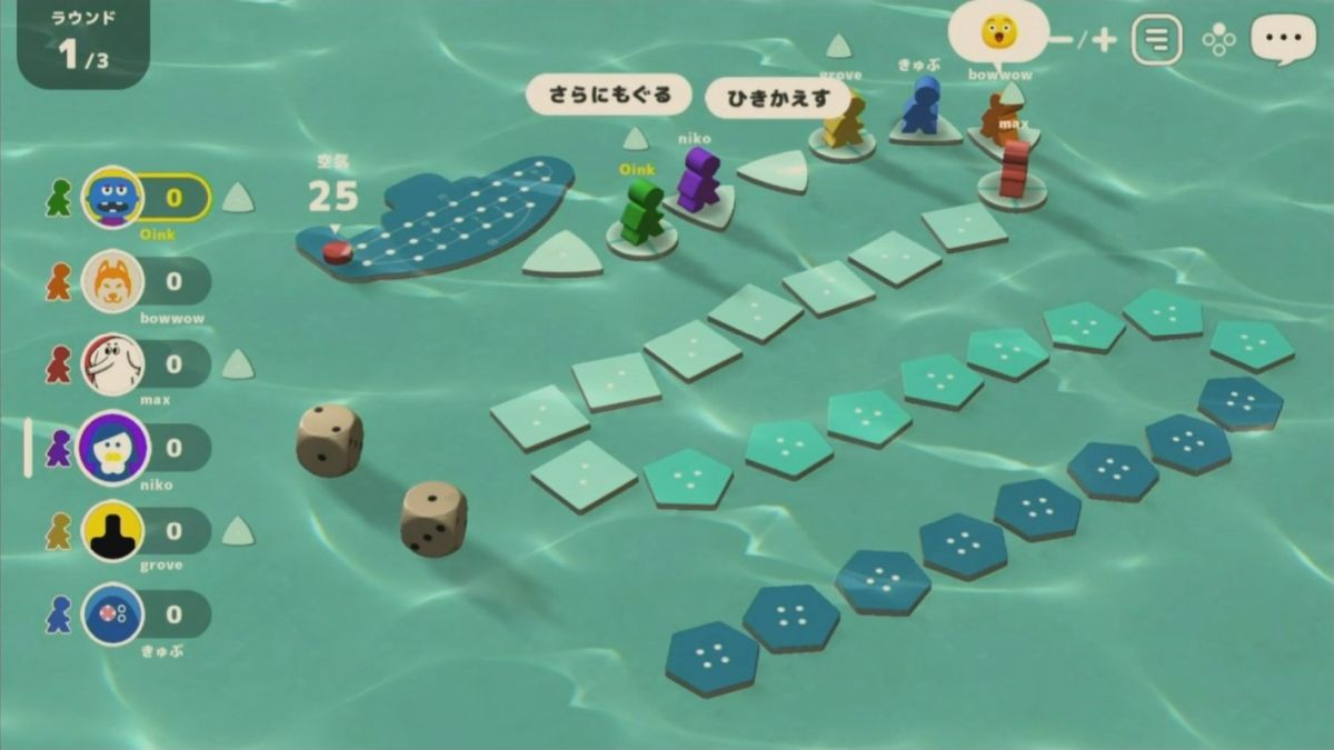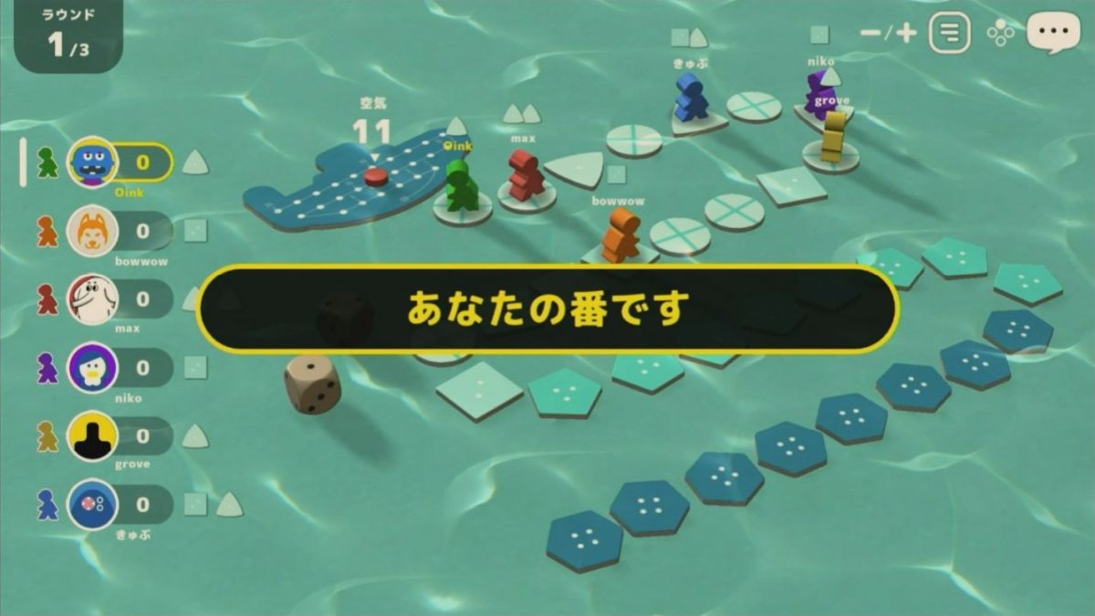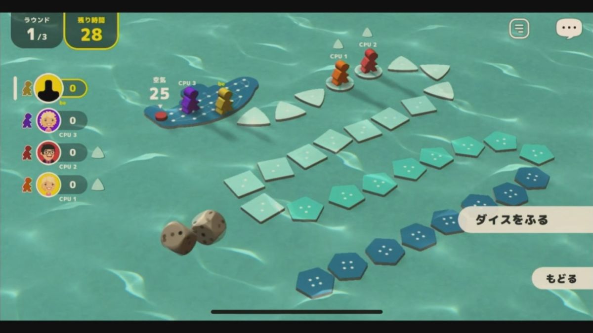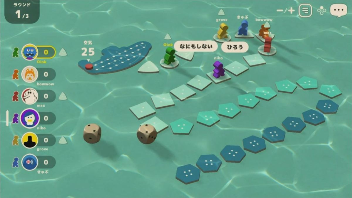 具体例として、『海底探検』では、進行方向を選択後に自動でふられていたダイスについて、「ダイスを振る」操作を加えました。これによって、プレイヤーはよりプレイに自分の気持ちを込められるようになりました。