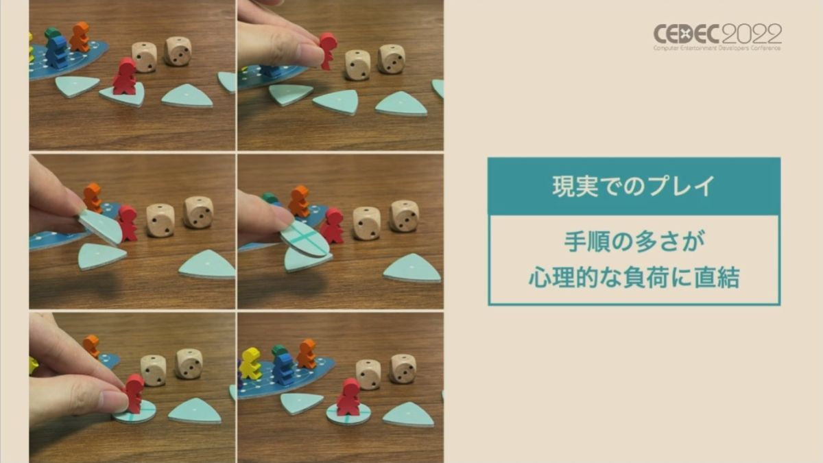 ここまでは、ボートゲームがもともと持つ面白さをどのように再現するかという話題でしたが、現実のボードゲームをデジタルゲームとして正確に再現することが必ずしもベストとは限らないことも分かってきました。アナログ、デジタルそれぞれの得意不得意を理解し、変えるべきところは変えることで、デジタルゲームだからこそできるボードゲームを目指せると新藤氏は語ります。