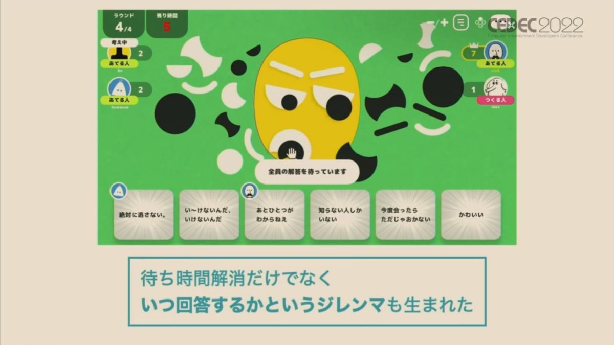 リアルタイムで選択肢が表示されることで、他のプレイヤーが何について考えているのか、何に悩んでいるのかが見えるようになりました。画面内からのフィードバックが増えたことで、画面の向こうに人間を感じることができるようになったと言います。