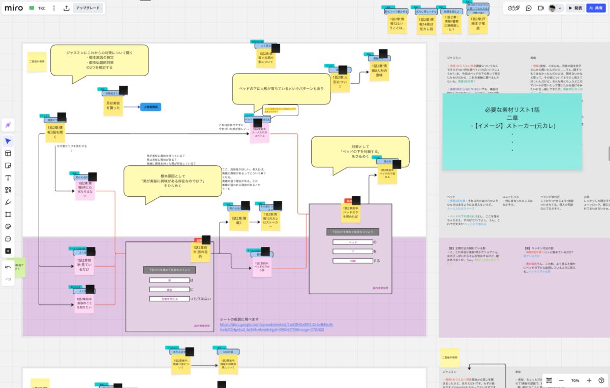 ホワイトボード共有ツール「miro」で管理している、『都市伝説解体センター』の進行フロー図(画像はインタビュー記事より引用)